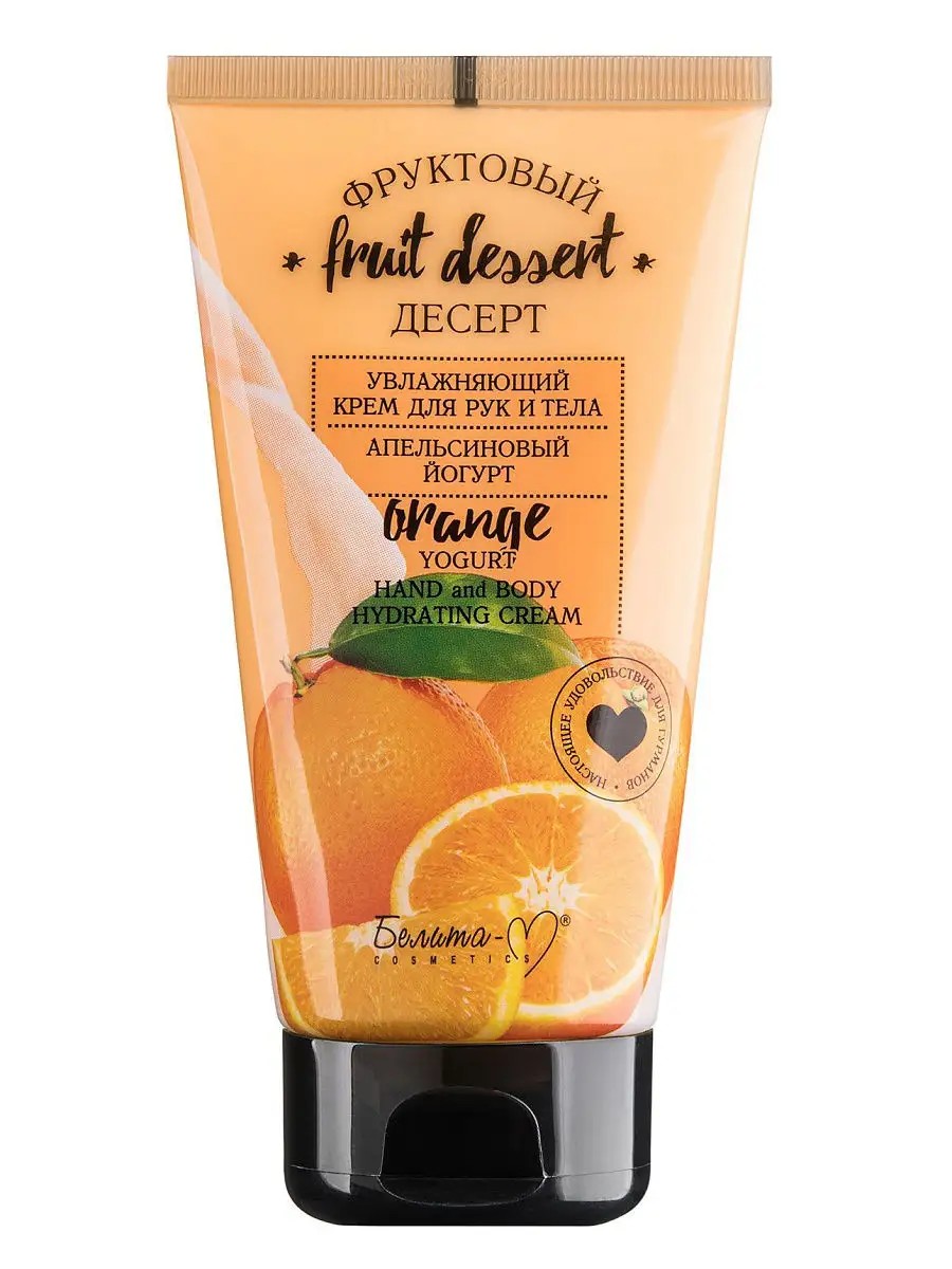 Увлажняющий крем для рук и тела превращает ежедневный уход за кожей в удовольствие, насыщенное ну очень вкусными ароматами любимых фруктовых десертов!Настоящее "лакомство" для кожи - нежнейший крем с экстрактом апельсина дарит коже глубокое, интенсивное увлажнение благодаря сбалансированному комплексу ингредиентов.Крем окутывает кожу бодрящим, ярким ароматом апельсина с согревающими легкими нотками нежного ванильного йогурта, надолго заряжая позитивной энергией, поднимая настроение и вдохновляя на новые свершения.