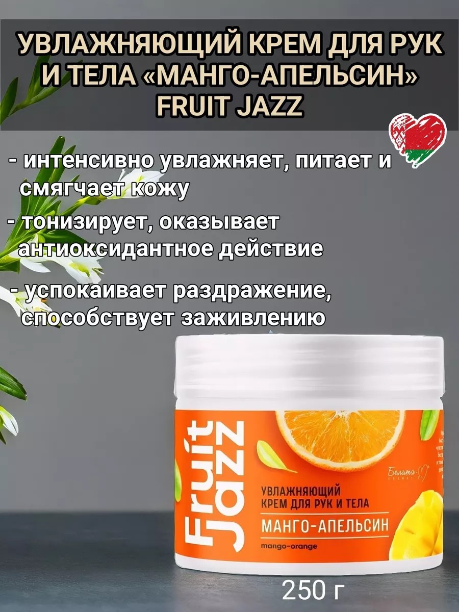 Крем для рук и тела Fruit Jazz представляет собой универсальное средство для увлажнения и питания кожи, а также для снятия раздражения и заживления. Этот крем особенно приятен благодаря своему ароматному сочетанию манго и апельсина, что делает его идеальным выбором для использования в домашних условиях или в бане. Без УФ защиты, он подходит для нормальной, проблемной и всех типов кожи, обеспечивая глубокое увлажнение и питание. Состав крема включает в себя натуральные экстракты манго и апельсина, которые способствуют улучшению состояния кожи, а также запатентованные биокомпоненты для эффективного увлажнения, и защита благодаря своей универсальности и качеству, крем Fruit Jazz является отличным выбором для тех, кто ценит не только эффективность, но и приятный аромат косметических средств.