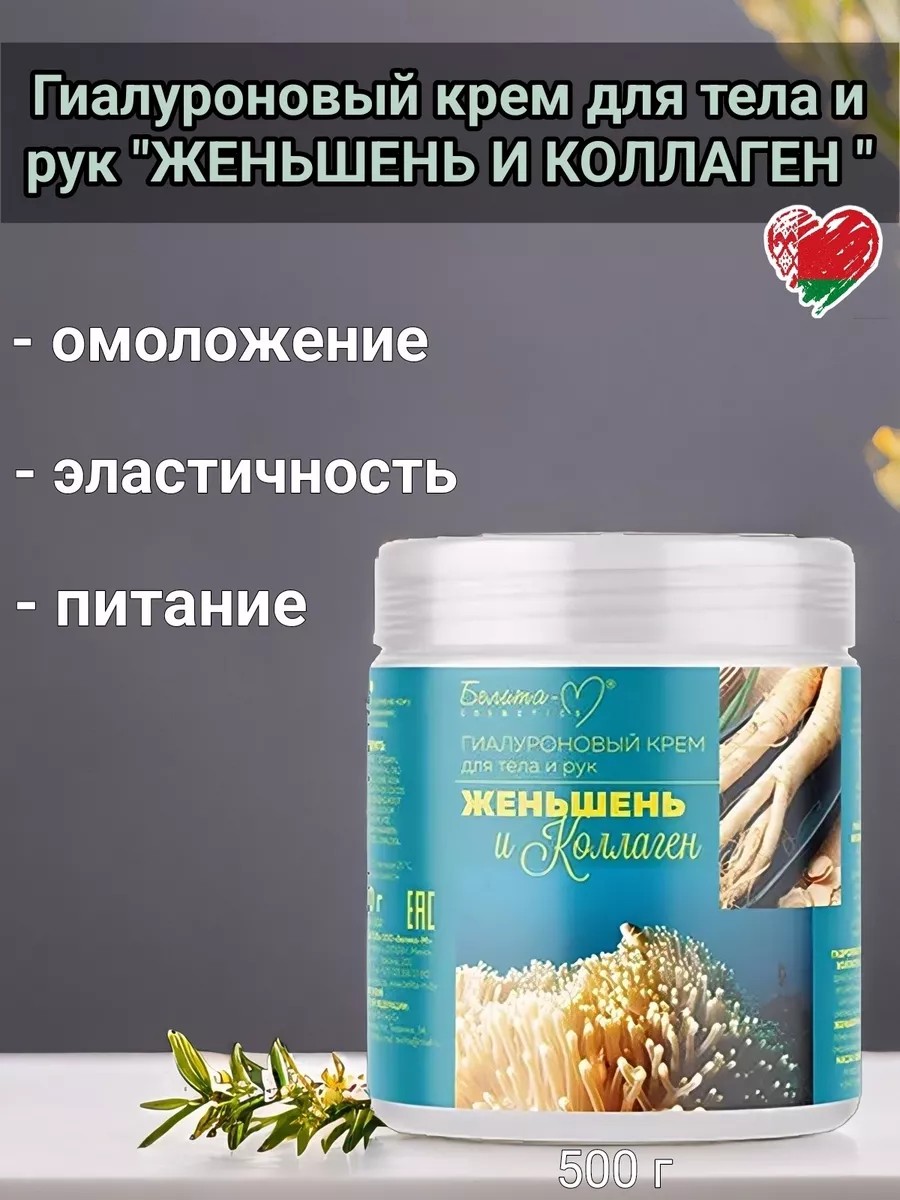 Белита-М Гиалуроновый крем для тела и рук женьшень и коллаген