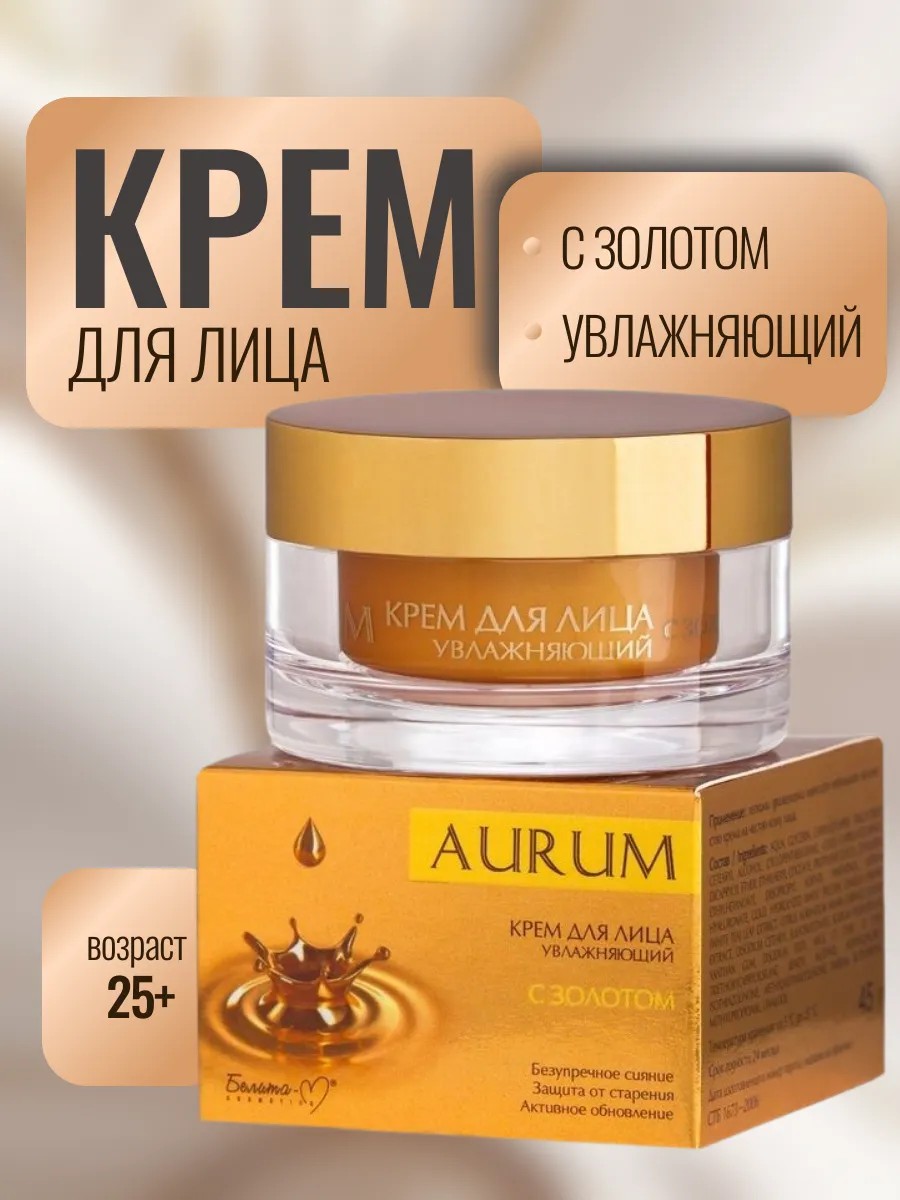 Крем для лица увлажняющий с золотом Aurum. Изысканный крем премиум-класса содержит уникальный набор драгоценных ингредиентов для безупречного сияния вашей кожи и поддержания ее естественной красоты.