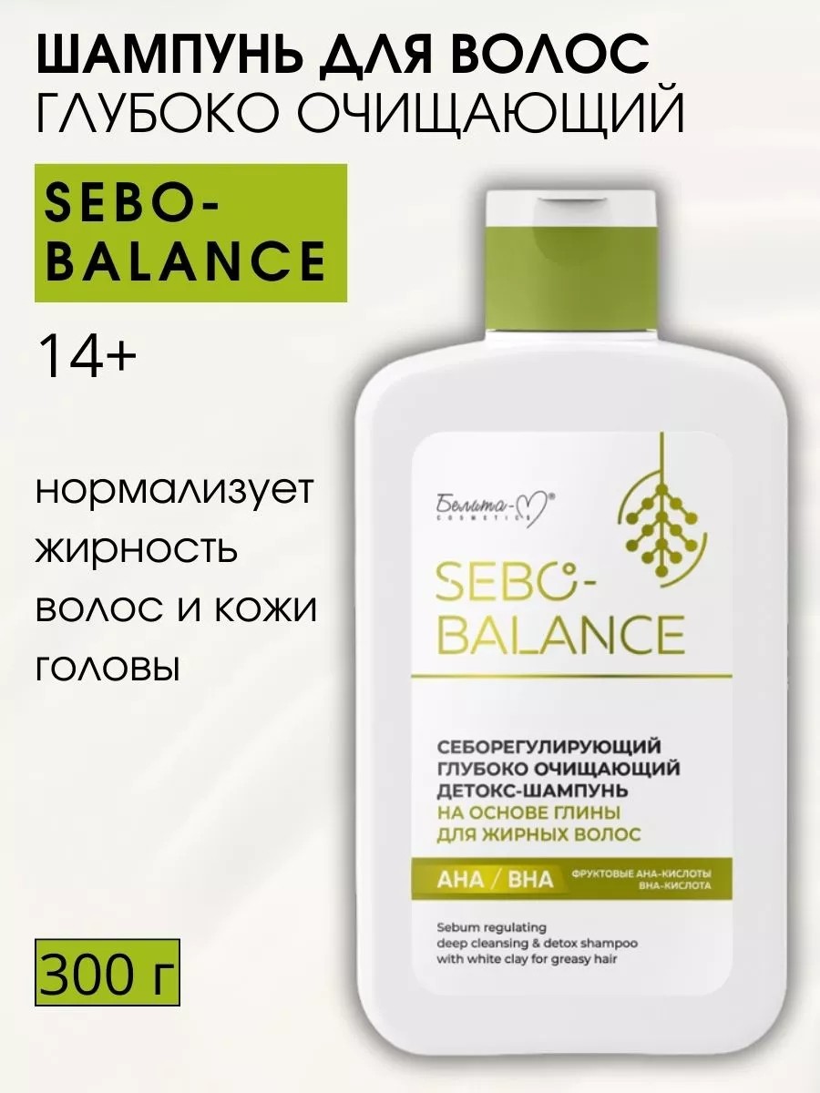 Себорегулирующий глубоко очищающий детокс - шампунь на основе глины для жирных волос серии SEBO-BALANS бренда Белита-М Белорусской уходовой косметики продлевает ощущение свежести волос. Формула шампуня обеспечивает бережное очищение без раздражения и сухости, делает волосы блестящими и послушными без утяжеления, сохраняет объем от самых корней. Подходит для частого применения. Нежная текстура без силиконов, минерального масла, красителей успокаивает кожу головы и нормализует ее состояние. Комплекс активных компонентов - FLUIDIPURE 8G (биовектор глицина, растительного сахара), KAO SOFCARE GP-1, кондиционирующий агент на основе натуральных масел, экстракты гуавы и шалфея, бетаин - позволяет увеличить интервалы между мытьем головы. Для эффективного применения вспеньте в руках, нанесите на влажную кожу головы и волосы, помассируйте, тщательно смойте. При необходимости повторите.