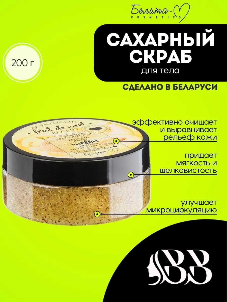 Immerse yourself in pure fruity pleasure with the Melon Liqueur Sugar Body Scrub from Belita-M, Fruit Dessert Series!
