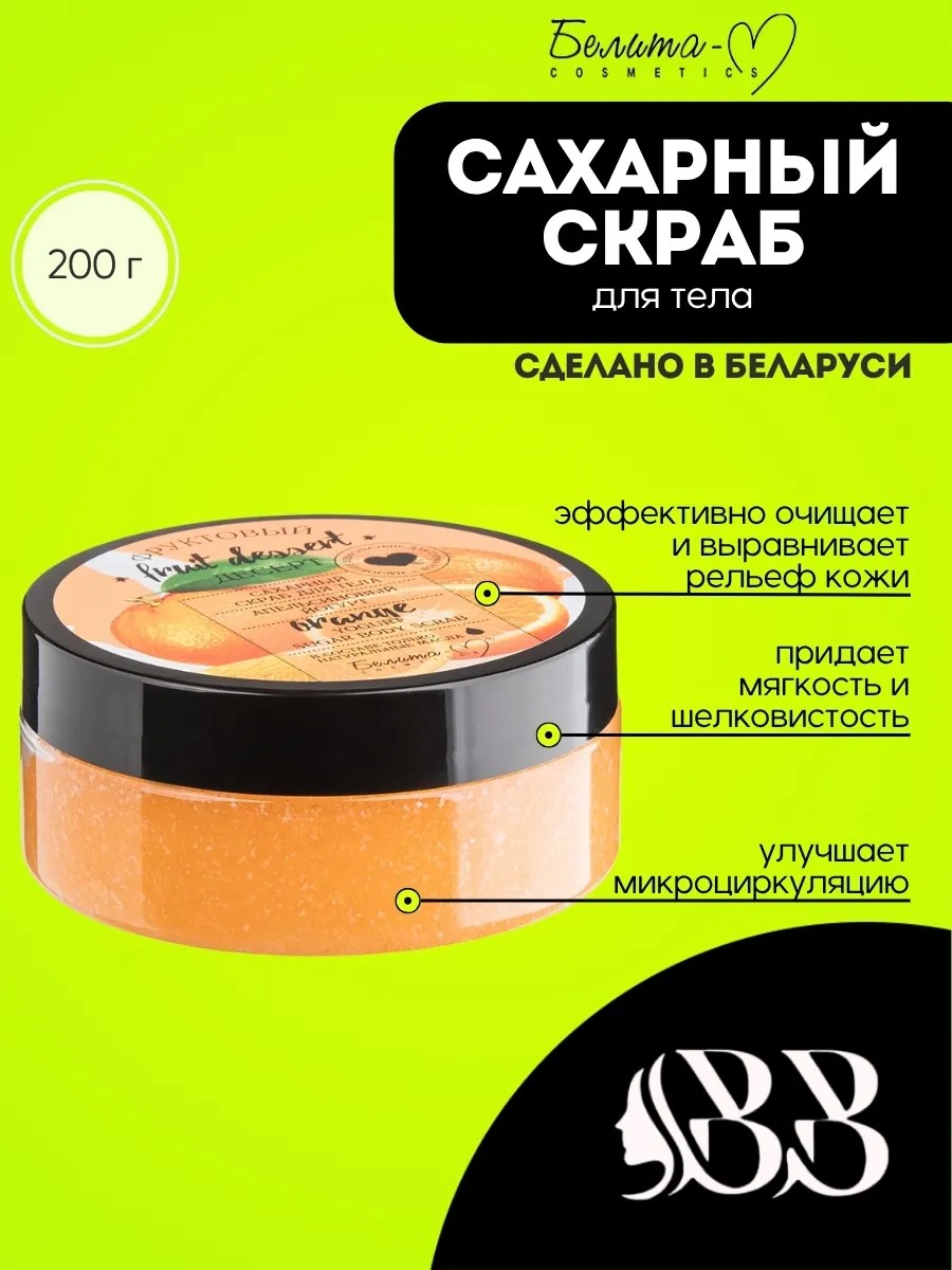 Discover softness and freshness with the "Orange Yogurt" sugar body scrub from Belita-M, Fruit Dessert series.