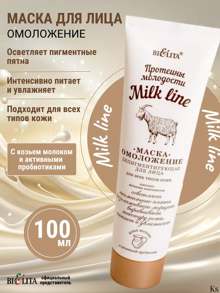 Маска омоложение для лица депигментирующая для всех типов кожи MILK LINE от белорусского бренда уходовой и декоративной косметики Bielita. Маска-омоложение содержит целебное козье молоко и активный пробиотик, идеально ухаживает за кожей, разглаживает морщины, осветляет участки гиперпигментации и заметно «оживляет» цвет лица.