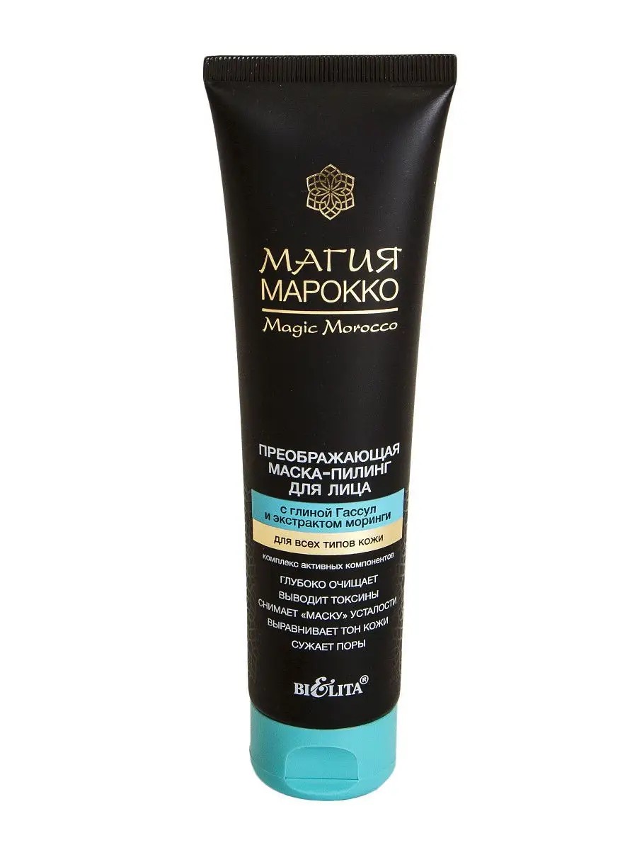 Маска-пилинг для лица, благодаря комплексу активных компонентов, оказывает преображающее действие на кожу: глубоко очищает, адсорбирует и выводит токсины, сужает поры, снимает "маску" усталости, освежает и выравнивает цвет лица. Глина Гассул адсорбирует токсины и грязь, уменьшает количество черных точек, повышает эластичность кожи, возвращает ей здоровое матовое сияние. Экстракт моринги снижает негативное влияние городских стрессов, предупреждает оседание на коже пыли и загрязнений. BioDTox очищает и сужает поры, уменьшает шелушение кожи.