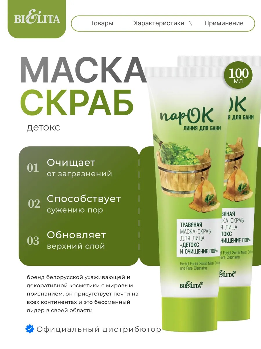 Белита Маска-скраб для лица для глубокого очищения пор 2шт