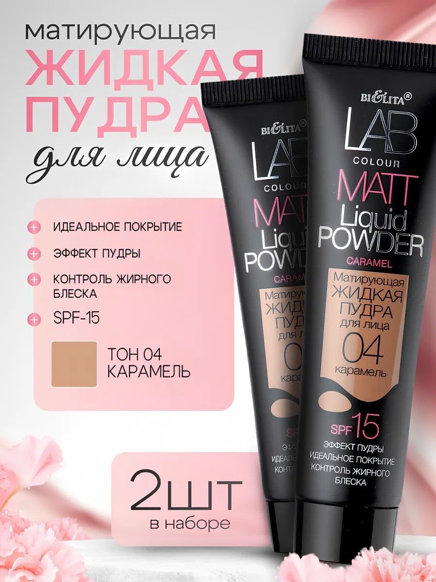 Белита Матирующая жидкая пудра для лица тон 04 карамель (2 штуки)