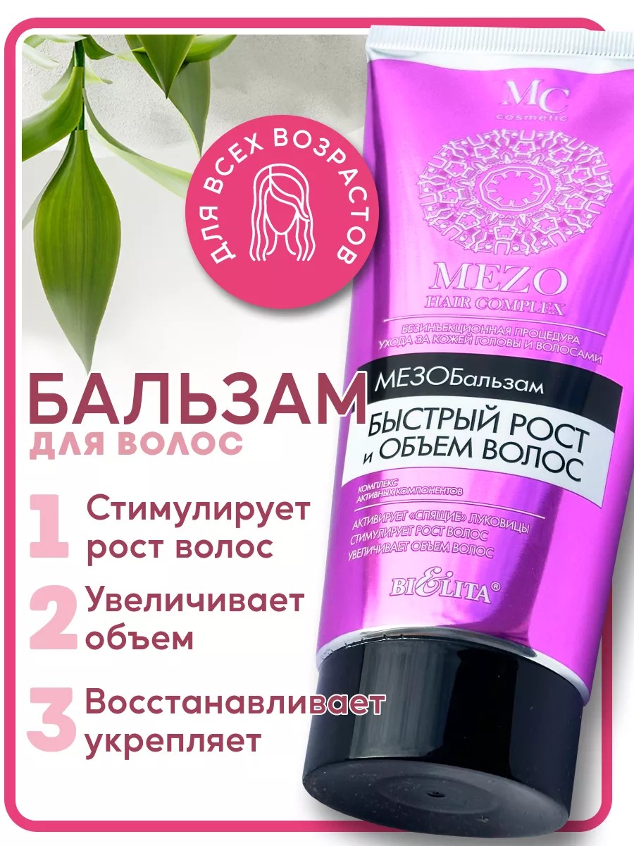 МезоБальзам кондиционирует волосы, закрывая их чешуйки, облегчает расчесывание мокрых и сухих волос. Создает дополнительный объем волос, способствует их восстановлению, укреплению и интенсивному росту. Активные компоненты в комплексном сочетании эффективно укрепляют волосяные луковицы, увлажняют и уплотняют волосы по всей длине, делают их более густыми и объемными, стимулируют интенсивный рост. МезоБальзам для волос – это профессиональное средство , которое обеспечит красивый и здоровый уход вашим локонам. Специализированная формула действует против выпадения волос и способствует их укреплению. Бальзам восстанавливает сухие и поврежденные кончики, питая их от корней до самых кончиков. Этот женский уход станет настоящей находкой для девушек, желающих увеличить объем своих волос. Средство придает блеск и сияние, делая волосы шелковистыми и гладкими. Гладкость волос помогает облегчить расчесывание, предотвращая ломкость и сухость. Бьюти-продукт работает как активатор роста, помогая достичь красивых локонов с каждый применением. Оригинальная разработка идеально подходит для легкого ежедневного ухода за всеми типами волос. Профессиональные рекомендации подтверждают эффективность бальзама в придании блестящего вида даже тонким локонам. Гладкие и сияющие волосы станут предметом комплиментов ваших подружек и близких людей