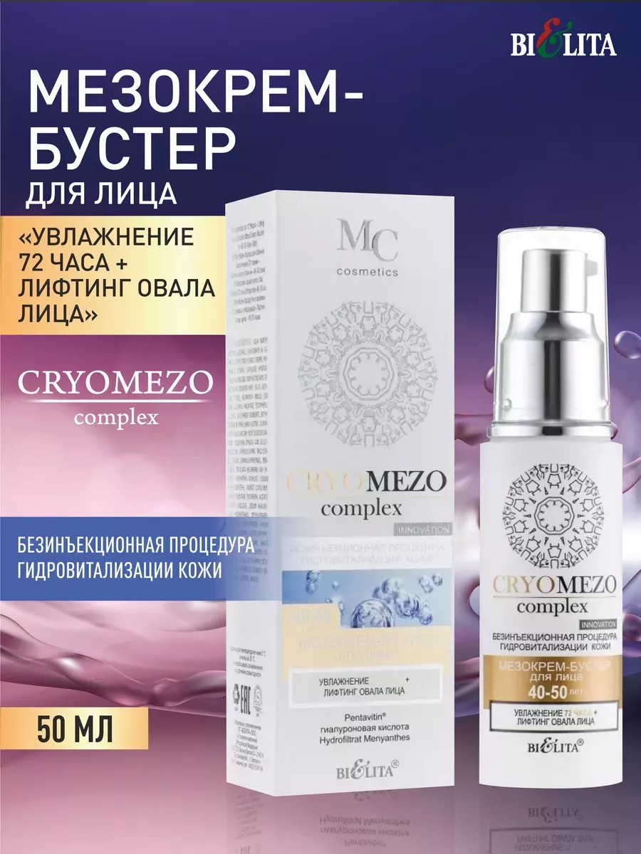 | Полное наименование товара | МезоКрем-бустер для лица "Увлажнение 72 часа + Лифтинг овала лица" 40-50 лет (50мл CRYOMEZOcomplex) |