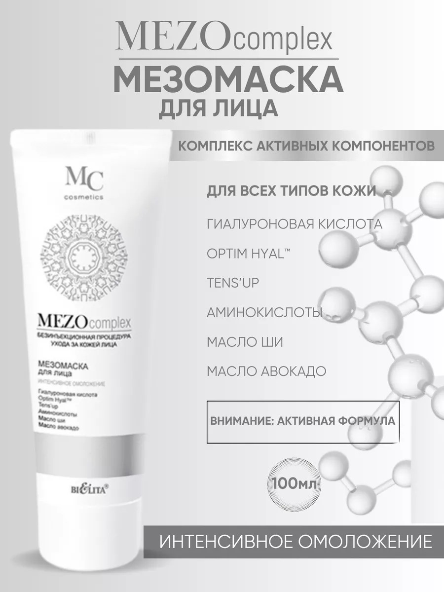 Optim Hyal способствует выработке гиалуроновой кислоты, восстанавливает её баланс, повышает уровень увлажненности кожи, делает её более упругой, эластичной и плотной, сокращает несовершенства и разглаживает морщины. Мезомаска глубоко питает и увлажняет кожу, подтягивает её, сглаживает морщины, улучшает цвет и выравнивает тон лица, придавая ему свежий и отдохнувший вид. Tens’up подтягивает кожу, обеспечивая продолжительный антивозрастной эффект за счёт усиления выработки коллагена. Гиалуроновая кислота, проникая в глубокие слои кожи, устраняет морщины изнутри, создавая эффект, сопоставимый с салонной мезотерапией. Аминокислотный коктейль (таурин, глицин, аргинин) насыщает клетки энергией и способствует их восстановлению. Масло ши увлажняет, смягчает кожу, стимулирует синтез собственного коллагена и улучшает тон лица. Масло авокадо эффективно питает и увлажняет кожу, ускоряет процесс обновления клеток.