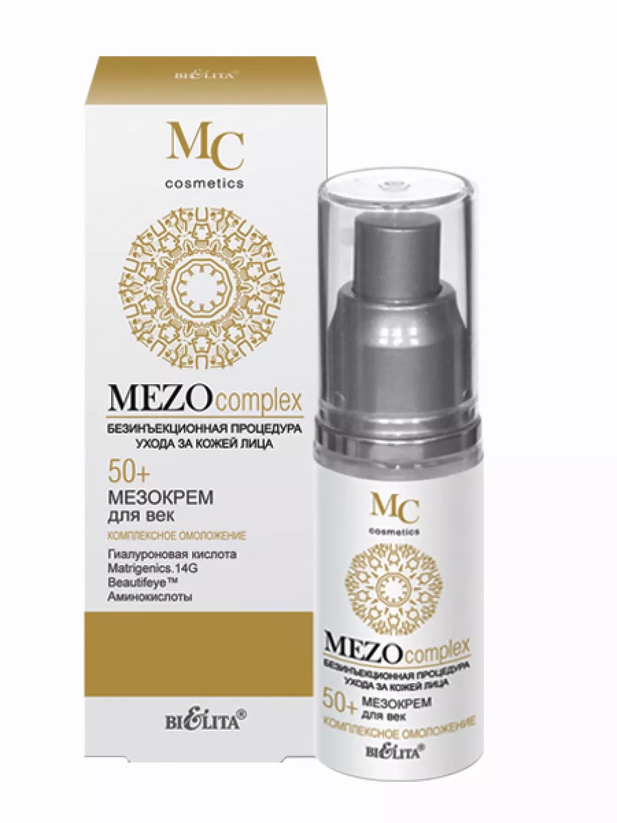 Мезокрем для век от белорусского производителя декоративной и уходовой косметики Белита восстанавливает оптимальный уровень увлажненности кожи век, усиливает микроциркуляцию, уменьшает припухлости и темные круги под глазами, подтягивает кожу век и разглаживает морщины вокруг глаз.
