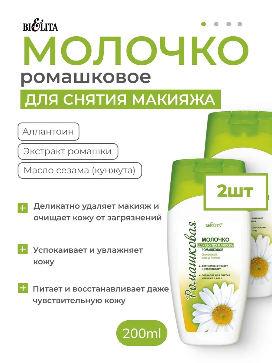 Молочко для снятия макияжа ромашковое от белорусского бренда Белита (BIELITA) - это нежное и эффективное средство для очищения кожи. Подходит для ежедневного ухода за всеми типами кожи, в том числе сухой, склонной к раздражениям и покраснениям.