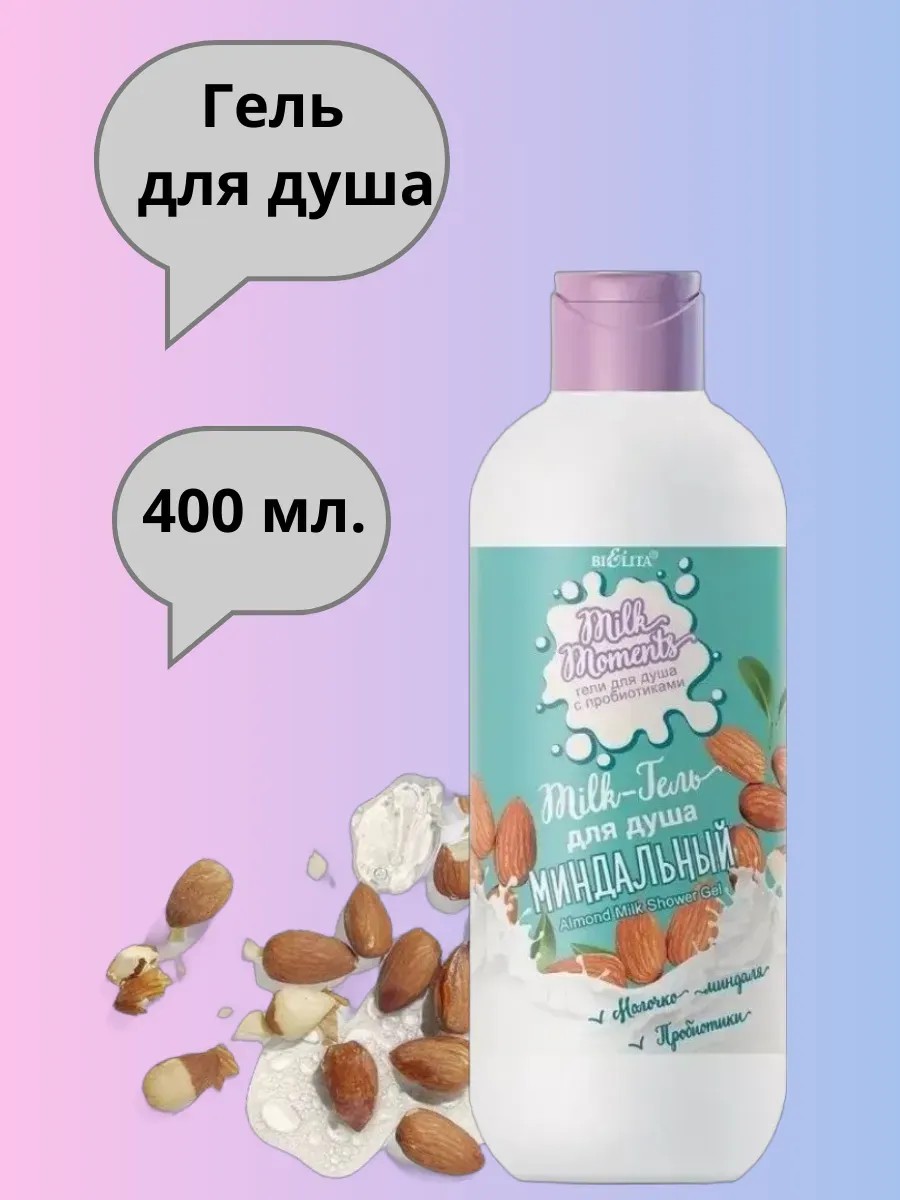Белита Милк-гель для душа "Миндальный с пробиотиками", 400 мл