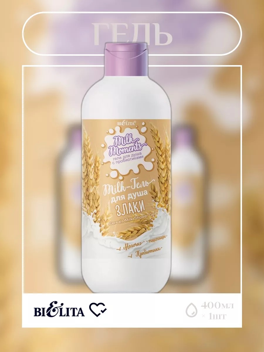 БЕЛИТА Milk Moments Милк-гель для душа Злаки, 400 мл