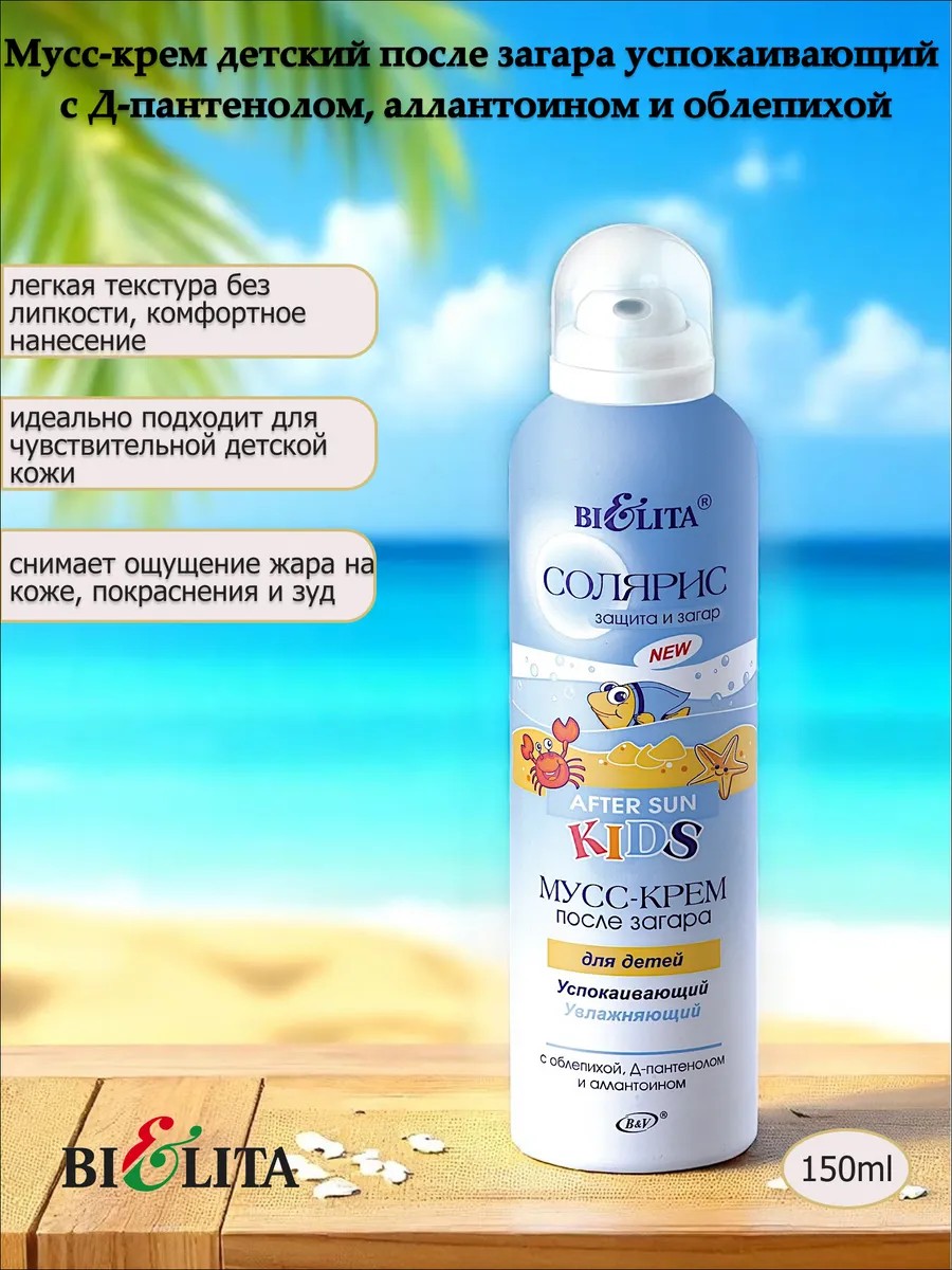 After-sun mousse-cream for children: soothing and moisturizing, from the Solaris line by Belita.