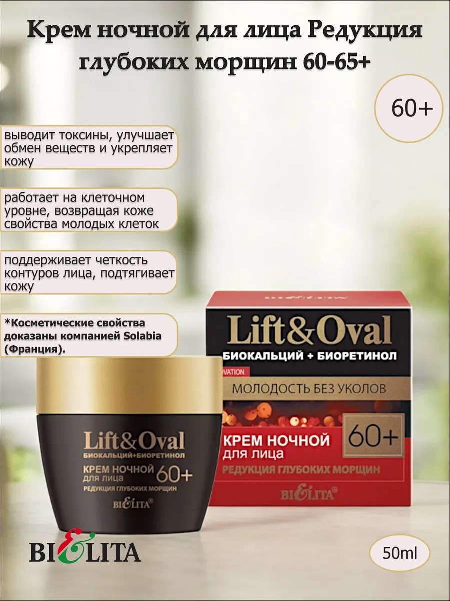| Полное наименование товара | Крем ночной для лица "Редукция глубоких морщин" 60+ 50мл. Линия Lift&Oval. Belita |