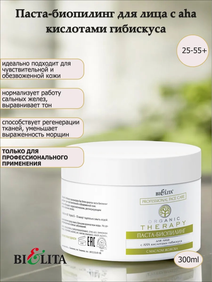 | Package contents | Bio-peeling paste with hibiscus AHA acids 300 ml. Organic Therapy line. Belita - 1 pc. |