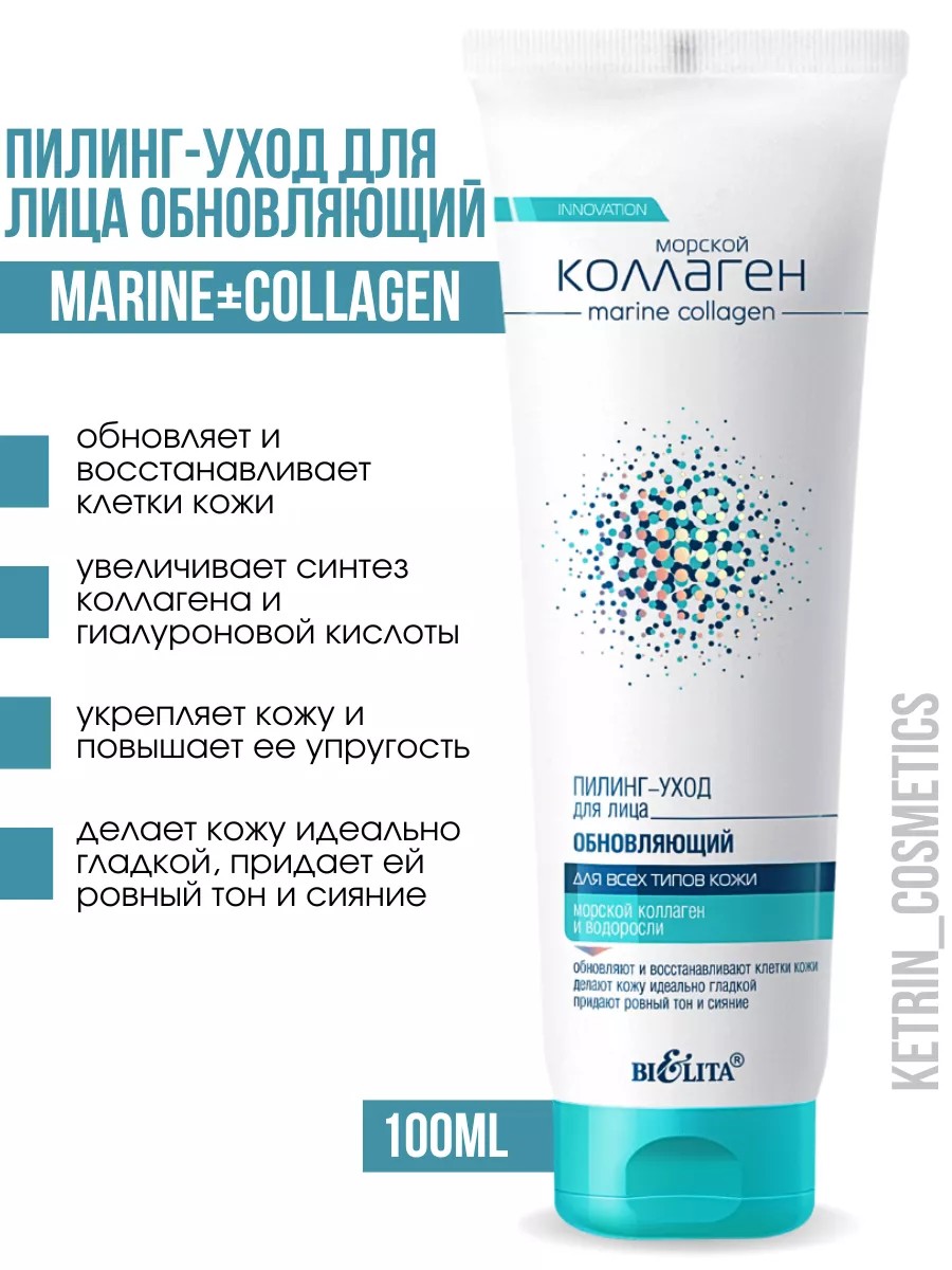 Гладкая, нежная и сияющая красотой кожа - это легко достижимый результат регулярного использования пилинг-ухода от белорусского бренда Белита. Косметическое средство порадует вас превосходным качеством и сбалансированным составом, благодаря чему каждое его использование будет маленьким ритуалом красоты. Микрочастицы оксида кремния, содержащиеся в Marine Collagen Peeling являются деликатным абразивом, который мягко отшелушивает ороговевшие частицы эпидермиса, в то время как целлюлоза эффективно очищает поры от излишков себума и загрязнений, а морской коллаген насыщает кожу влагой. Средство стимулирует кровообращение, выравнивая цвет лица, повышает тонус кожи и препятствует появлению высыпаний, даря длительное ощущение свежести и комфорта. Наполните жизнь яркими красками с Белита!Способ применения: используйте 1-2 раза в неделю. Нанесите на очищенную сухую кожу бережными круговыми массирующими движениями, избегая области вокруг глаз. Смойте теплой водой.