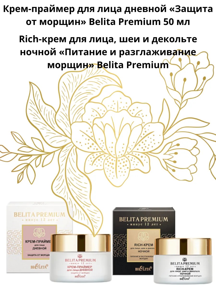 По достижении возраста 35, 40, 45, 50, 55, 60 лет каждой женщине необходимо позаботиться о коже своего лица, так как именно в этот период запускается механизм старения. Компания БЕЛИТА разработала новую линию Belita Premium. Минус 12 лет — это роскошь вне времени, которой вы достойны. Подарите молодость и сияние вашей коже с премиальным уходом от БЕЛИТА!