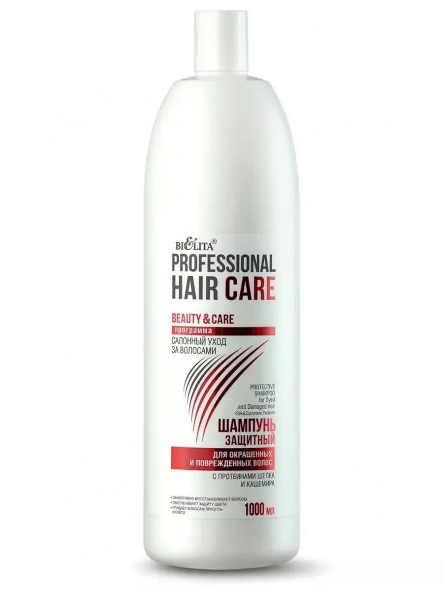 ШАМПУНЬ защитный для окрашенных и поврежденных волос с протеинами шелка и кашемира 1000 мл: обеспечивает защиту цвета; эффективно восстанавливает волосы; придаёт блеск и яркость
