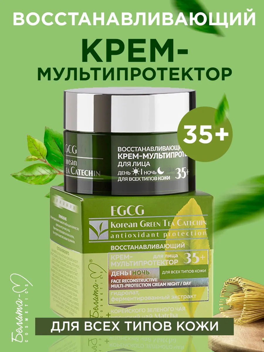 Восстанавливающий крем-мультипротектор для лица день/ночь 35+ из серии EGCG Korean Green Tea Catechin от Belita – это гармония корейских и японских традиций в уходе за кожей. Подарите своей коже заботу и сияние молодости!