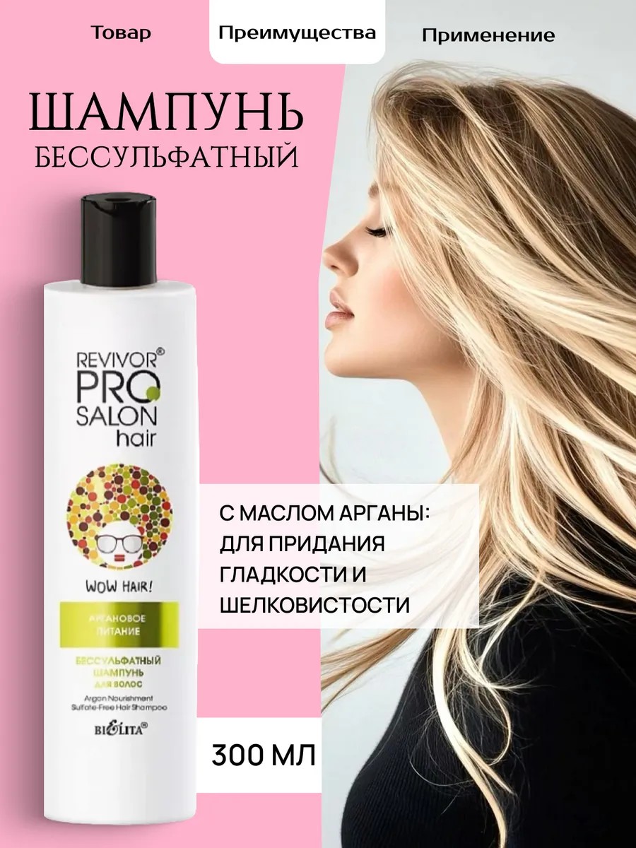 Бессульфатный шампунь "Аргановое питание" от Revivor PRO Salon Hair — это профессиональное средство для ухода за волосами, созданное для бережного очищения и питания.