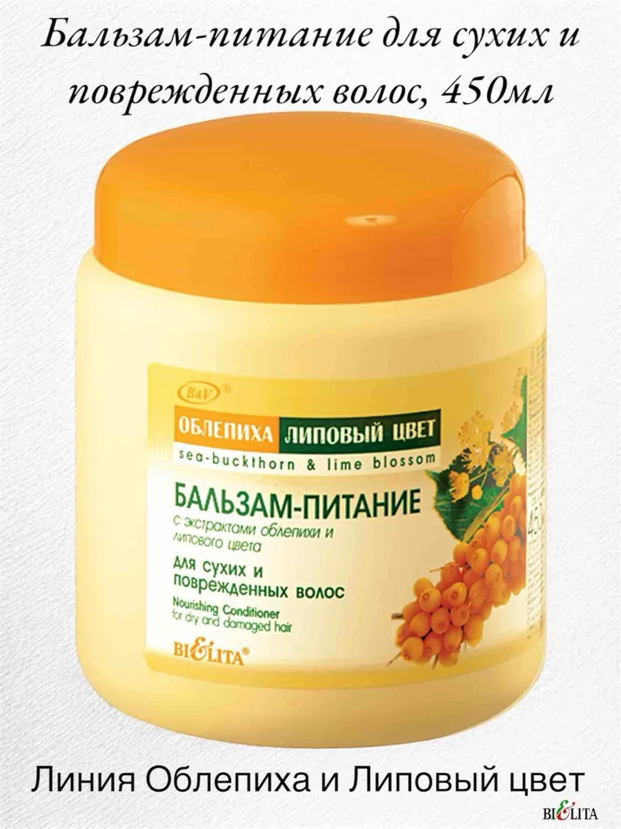 С экстрактами облепихи и липового цвета. Бальзамы-питание идеален для ухода за сухими поврежденными волосами. Лечебные экстракты облепихи и липы, масло облепихи питают и насыщают силой волосы, покрывая каждый волосок защитной оболочкой. Результат волосы получают защиту от повреждений, приобретают здоровый блеск и шелковистость. Для лучшего результата лучше использовать в комплексе с шампунем Облепиха и липовый цвет от БЕЛИТА.