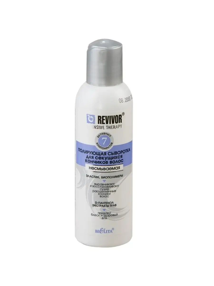 BELITA, Revivor Intensive Therapy Polishing Serum for Split Ends, 150 ml, 1 pc. This serum is designed for effective care of dry and split ends. Contains elastin, restorative conditioners, arnica and calamus extracts, and D-panthenol. It is quickly absorbed by damaged areas of hair, restoring them, enveloping their ends in a thin layer. The result is a smooth hair surface, elasticity, and strength. Directions: Apply the product to clean, dry or wet ends. If necessary, use several times a day during the entire period of hair structure restoration. Do not rinse!