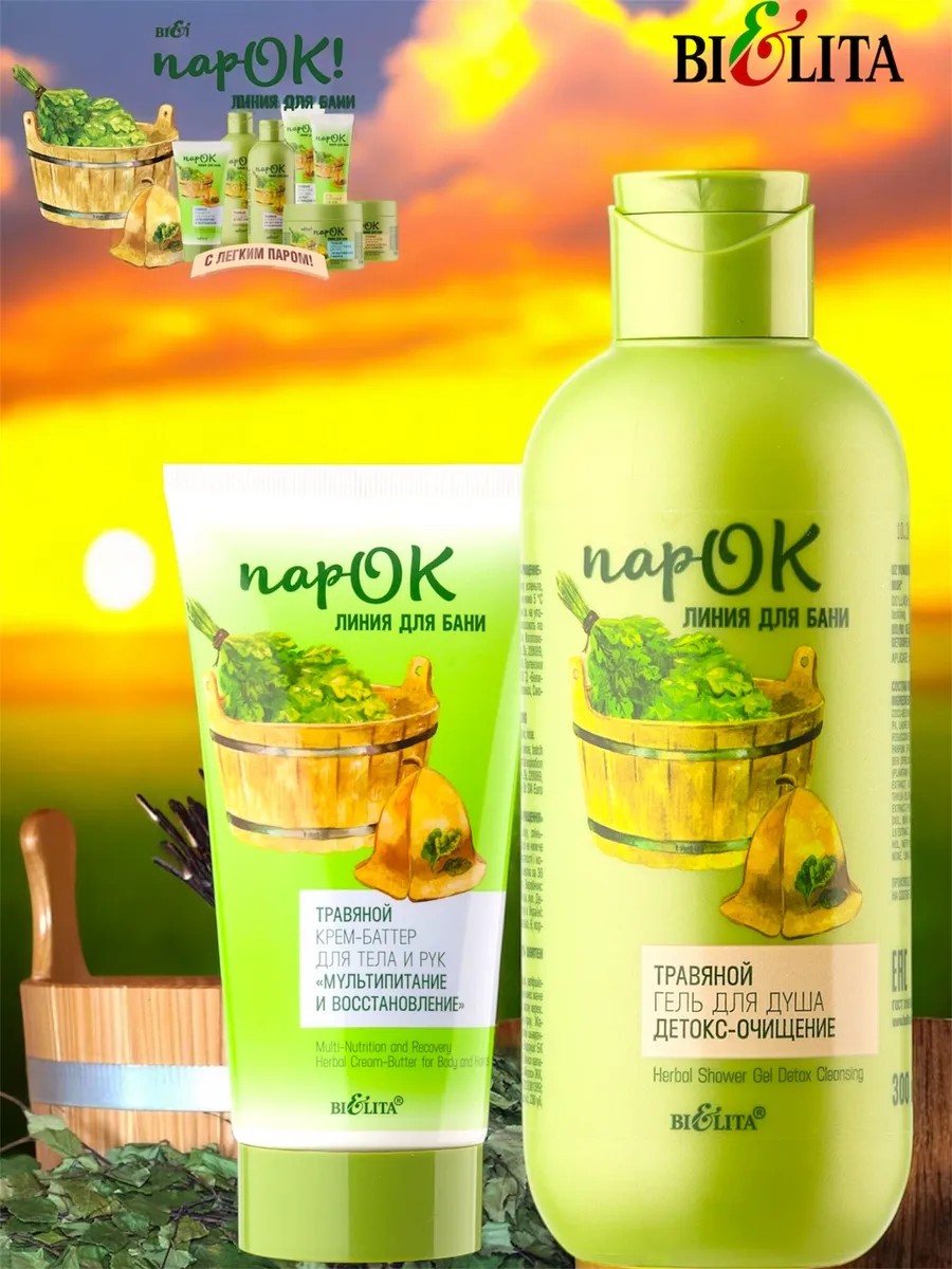 | Полное наименование товара | Гель для душа травяной "Детокс-очищение", 300мл , крем-баттер для тела и рук «Мультипитание и восстановление» 150мл, парок |