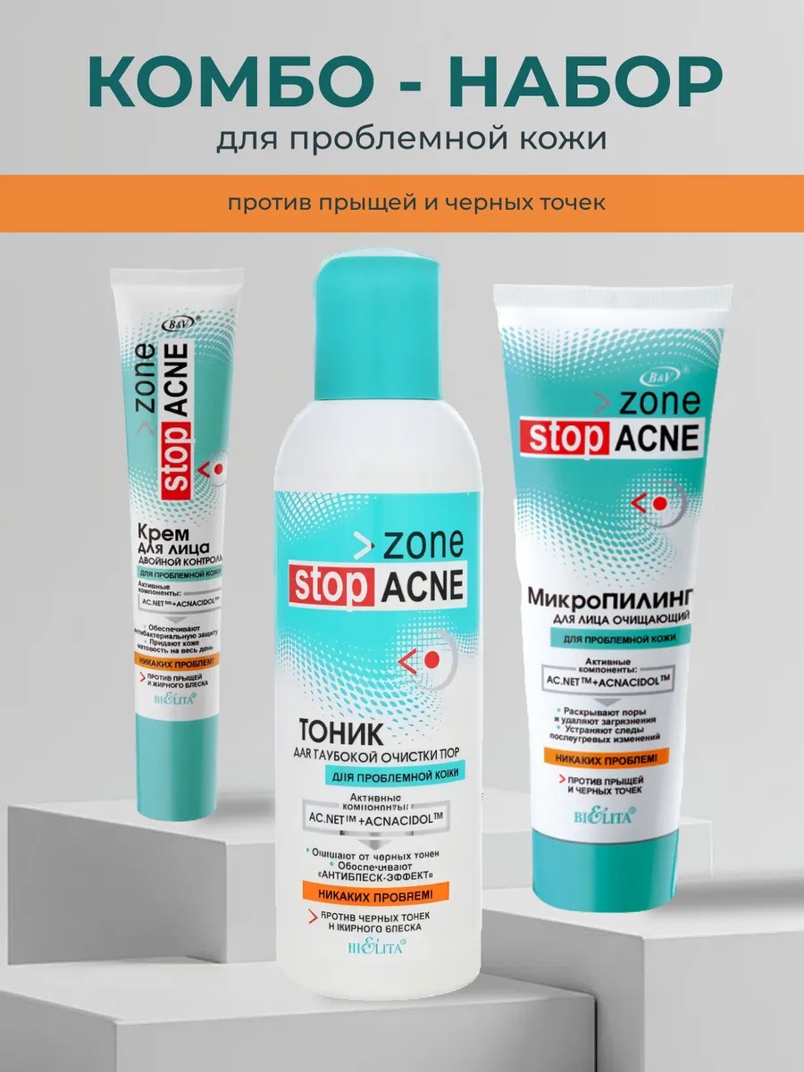 | Полное наименование товара | Набор STOP ACNE от прыщей и черных точек тоник, микропилинг, крем |