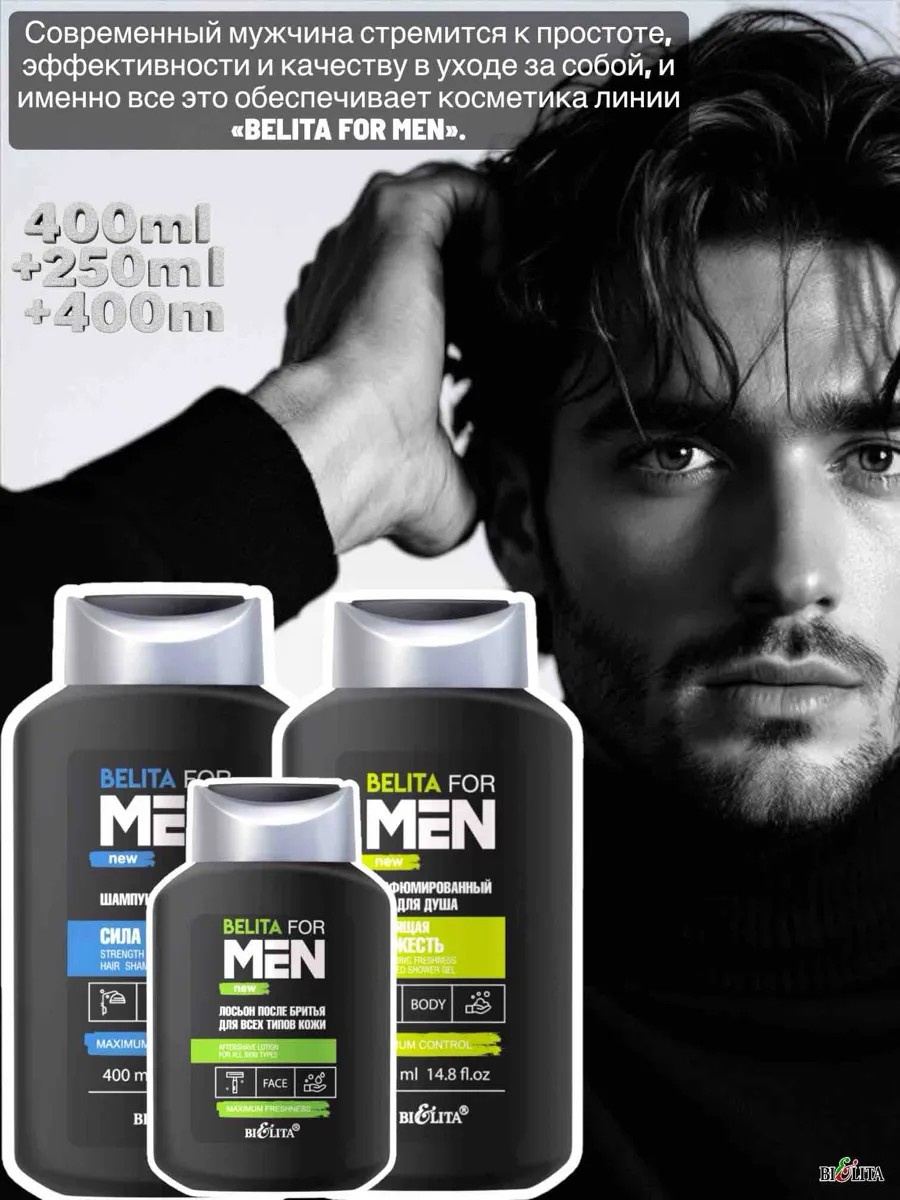 Набор мужской гель для душа , шампунь для волос и лосьон после бритья от Белита - это идеальный выбор для мужчин, которые ценят качественный уход за собой. В набор входят парфюмированный гель для душа, шампунь и лосьон после бритья для всех типов кожи, которые бережно очищают, увлажняют и освежают кожу. Средства обладают приятным ароматом и нежной текстурой, что делает их использование комфортным и приятным. Набор будет отличным подарком для близких.