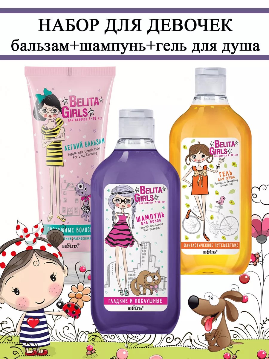 Набор косметики для девочек Белита для ванны и душа: гель+шампунь+бальзам станет отличным новогодним подарком!