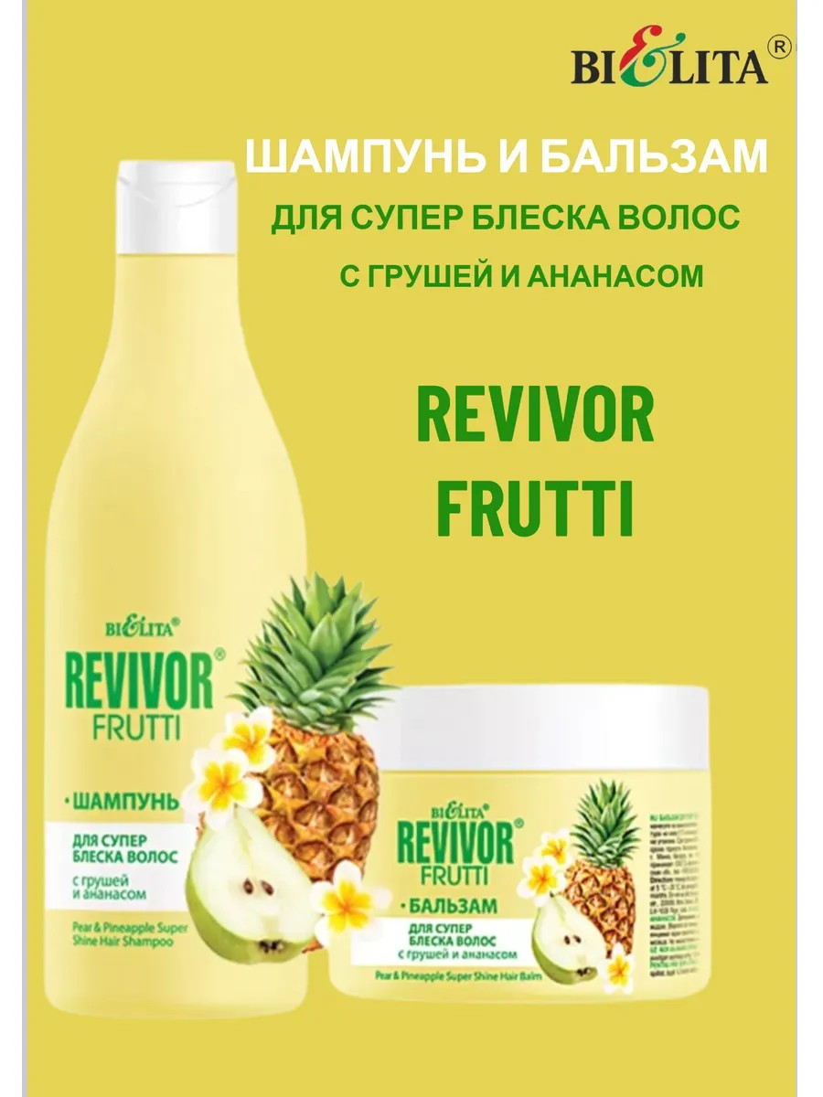 | Полное наименование товара | Шампунь и бальзам для супер блеска волос с грушей и ананасом Revivor Frutti |