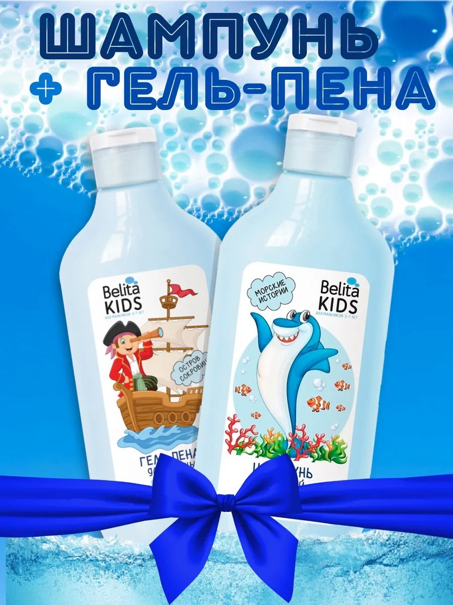 | Полное наименование товара | Детский шампунь для волос «Морские истории» Belita Kids.Для мальчиков 3-7 лет 300 мл, Гель-пена для ванны «Бухта приключений» Belita Kids.Для мальчиков 3-7 лет 300 мл |
