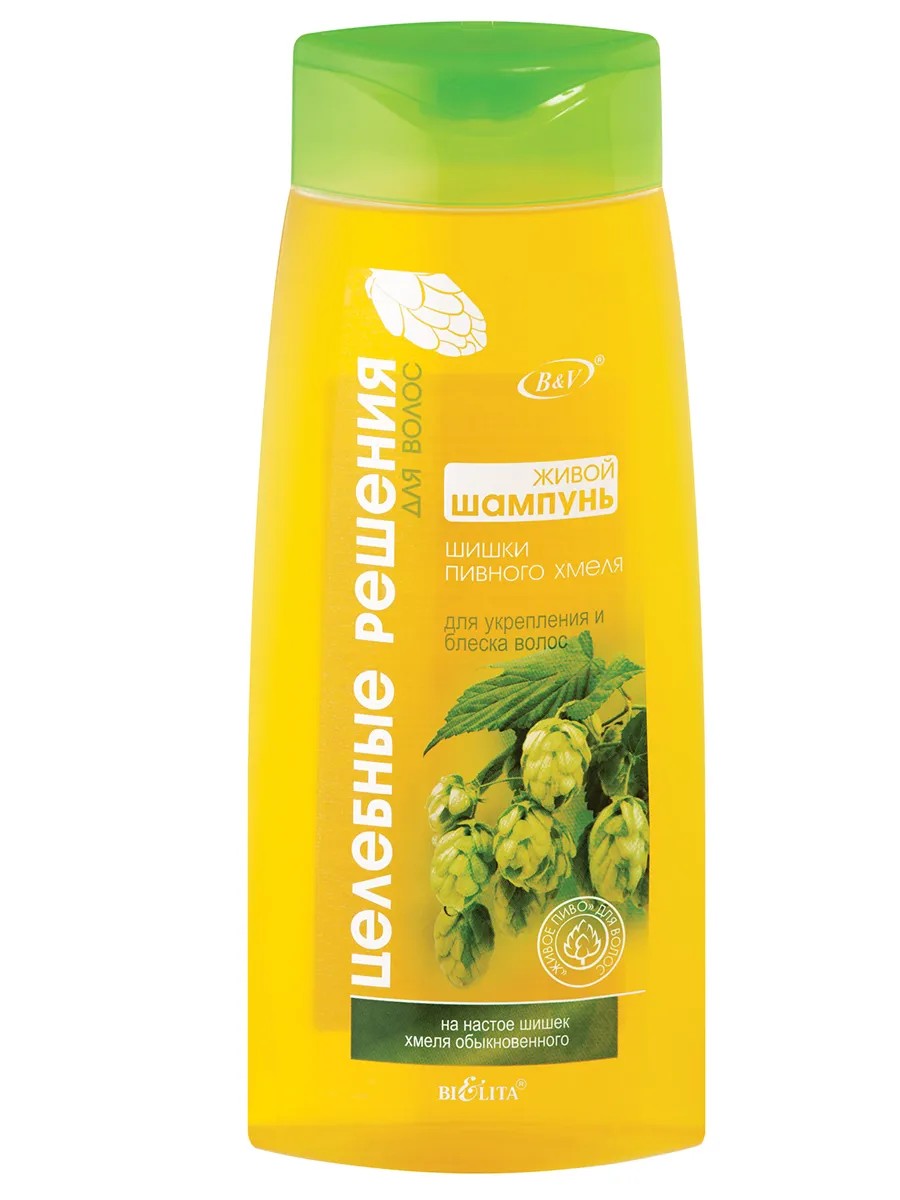 Живой ШАМПУНЬ от белорусского производителя декоративной и уходовой косметики БЕЛИТА для укрепления и блеска волос Шишки пивного хмеля основан на богатейшем по составу настое шишек хмеля, который обладает укрепляющим действием, восстанавливает естественный баланс кожи головы и придает волосам ослепительный блеск. Регулярное применение шампуня и бальзама придает волосам силу и блеск, ускоряет их рост.