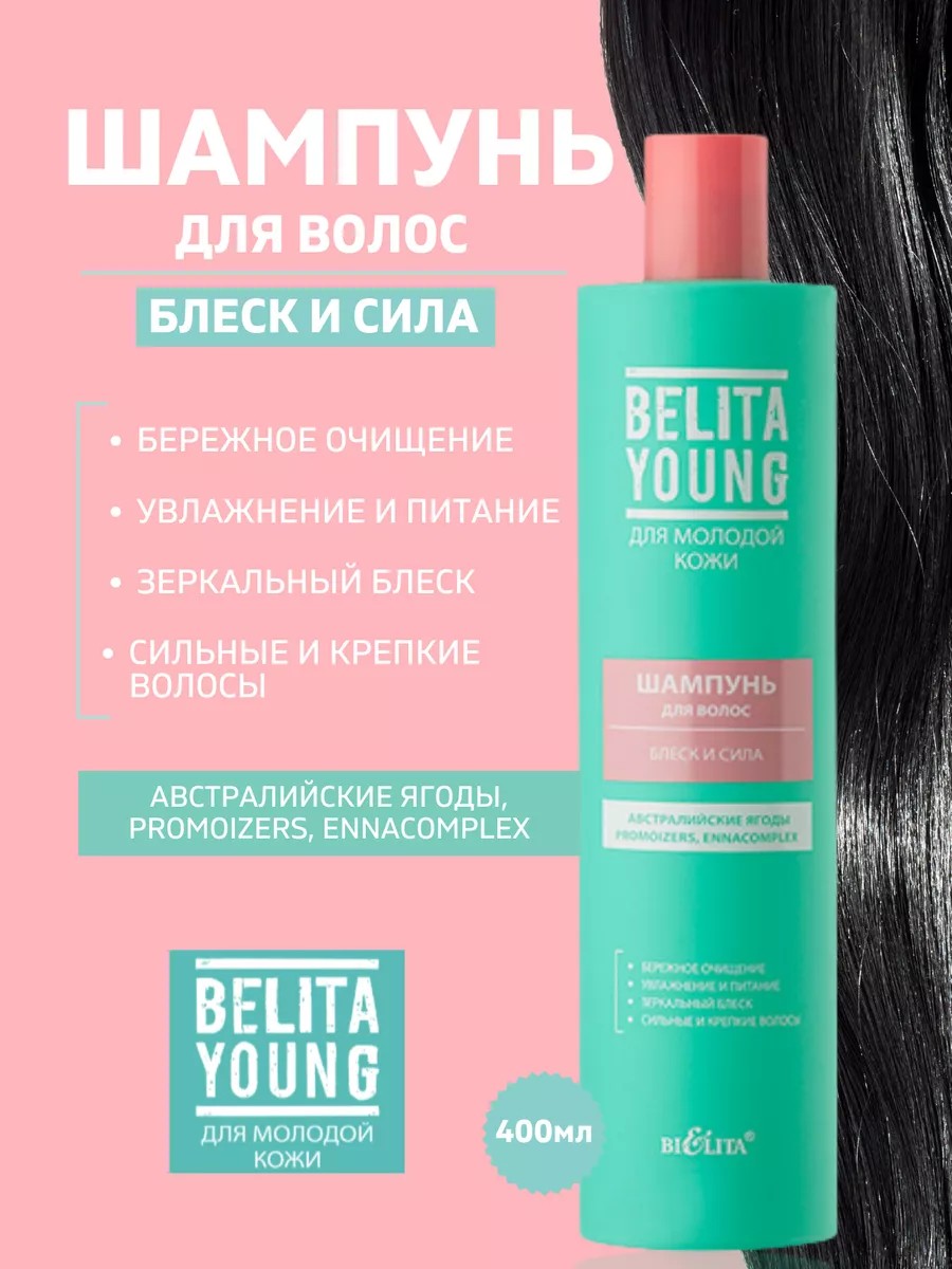 Белита Шампунь для, блеска волос "Блеск и сила" 400 мл