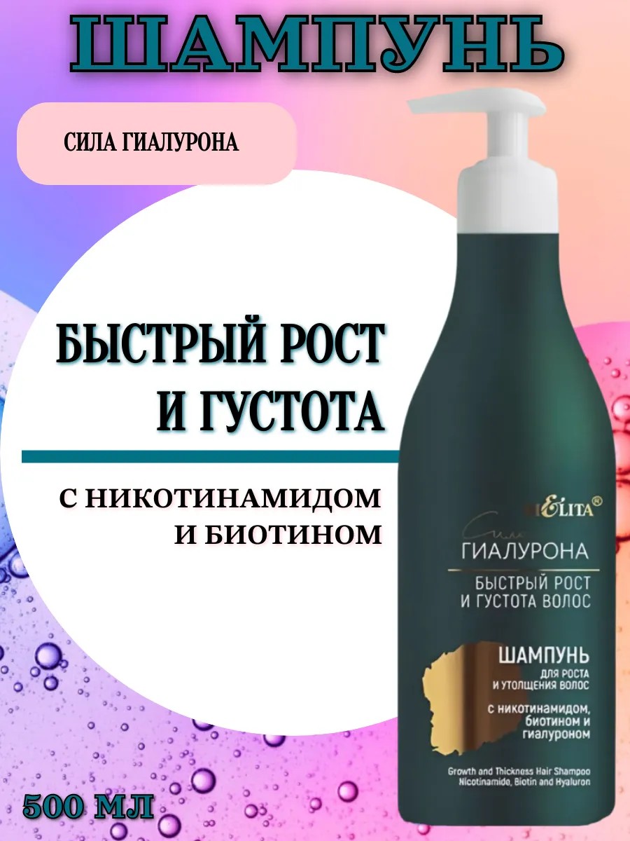 Белита Шампунь Сила гиалурона "Для роста и утолщения" с никотинамидом, биотином. Шампунь специально разработан для волос, обладающих проблемой медленного роста, а также для волос, склонных к выпадению. Комплекс активных компонентов (Никотинамид, Биотин, Гиалуроновая кислота, Kopexil):
