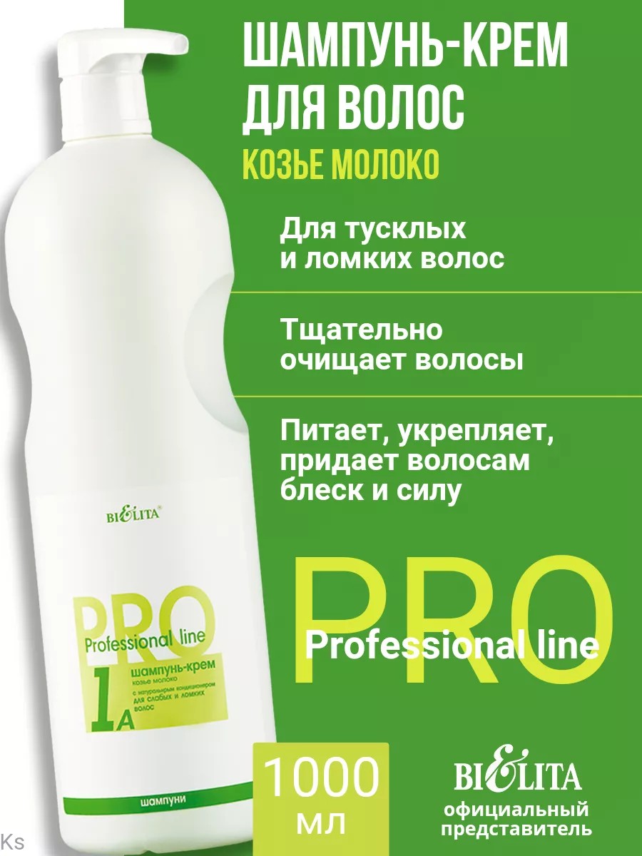Pro Professional Line Goat's Milk Shampoo with Natural Conditioner for Weak and Brittle Hair from the Belarusian cosmetics brand Belita. Milk proteins strengthen the hair structure. This cream shampoo perfectly cleanses hair, maintains its moisture balance, nourishes, and strengthens. Dull and brittle hair gains shine and strength. PRO Professional Line Shampoo is a true professional in hair care. It is designed for those who want professional hair care at home.