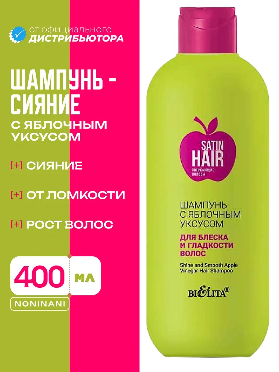 | Полное наименование товара | Шампунь с яблочным уксусом SATIN HAIR Сверкающие волосы, 400 мл |