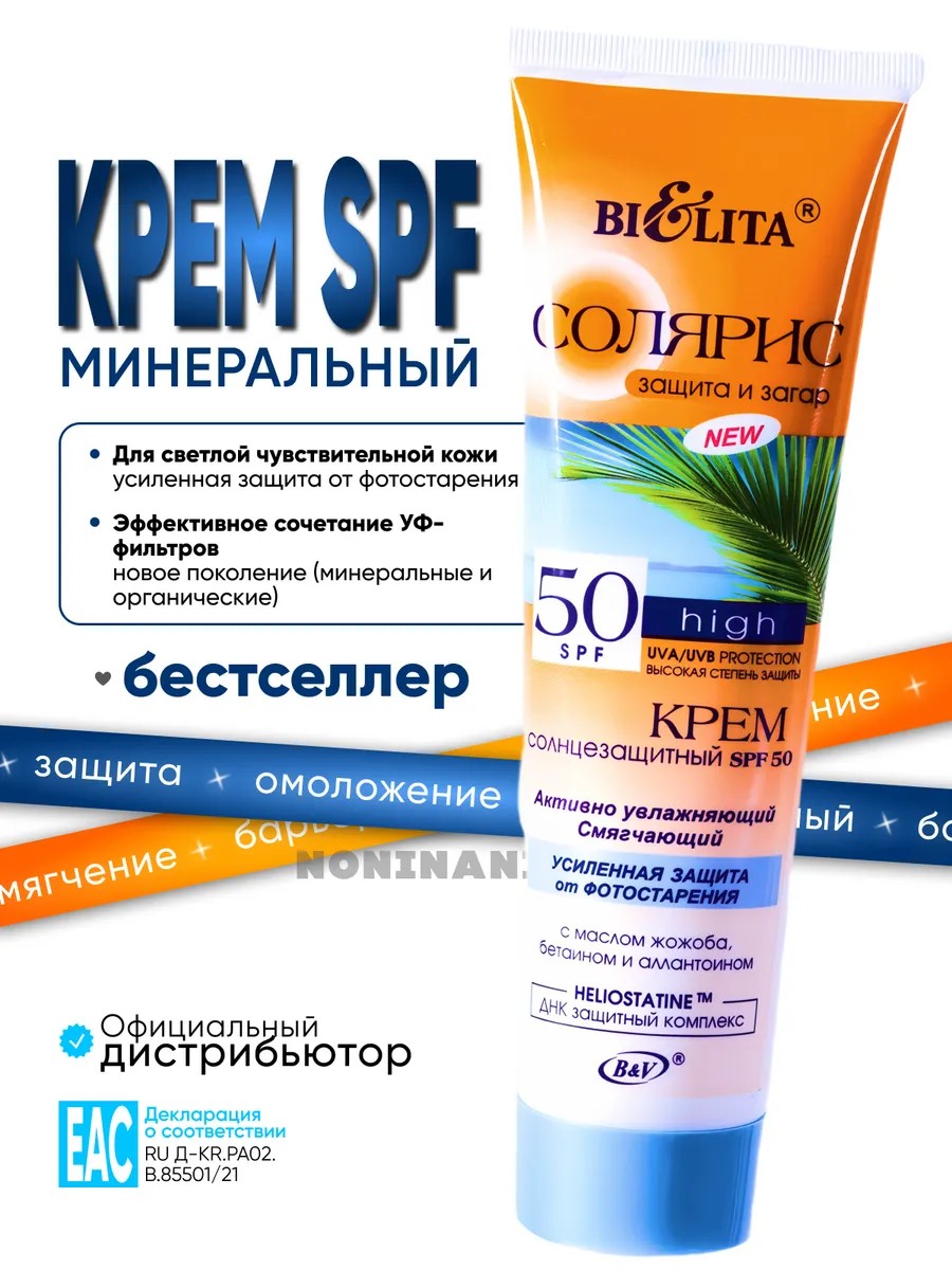 | Комплектация | Белита Солярис Крем солнцезащитный SPF 50 100 мл; спф крем для лица и тела; спф крем; крем для лица и тела; омолаживающий спф крем; гипоаллергенный крем; минеральный спф крем для лица и тела; детский спф |