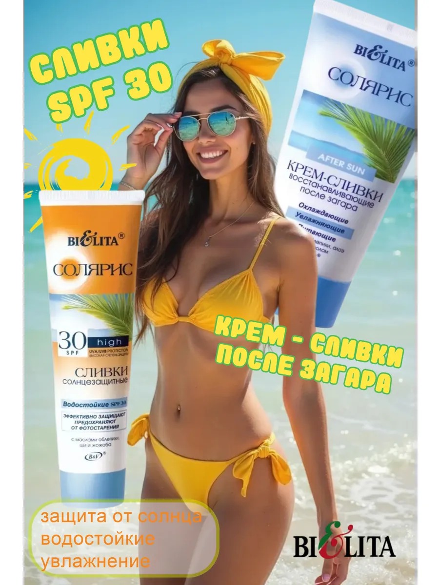 КомплектацияСЛИВКИ солнцезащитные водостойкие 100мл и Крем-сливки восстанавливающие ПОСЛЕ загара, 150мл