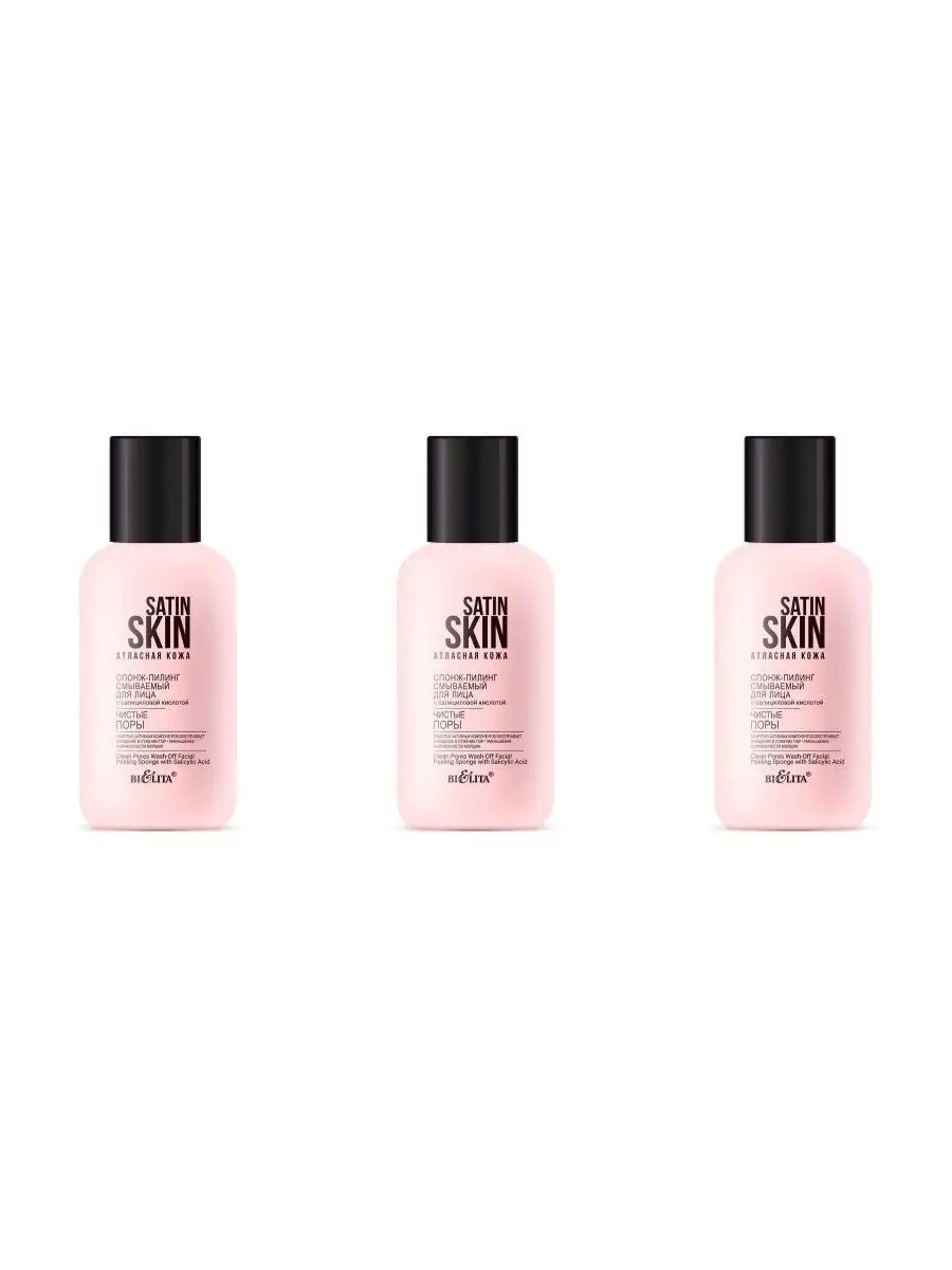 BELITA SATIN SKIN "Clean Pores" Wash-Off Sponge Peeling with Salicylic Acid, 3 x 95ml. Effectively exfoliates dead skin cells from the skin's surface, smooths the skin's microrelief, reduces the appearance of wrinkles, lightens superficial pigmentation, and evens out skin tone. Directions: Apply to a cotton pad, wipe over skin, and rinse with water.