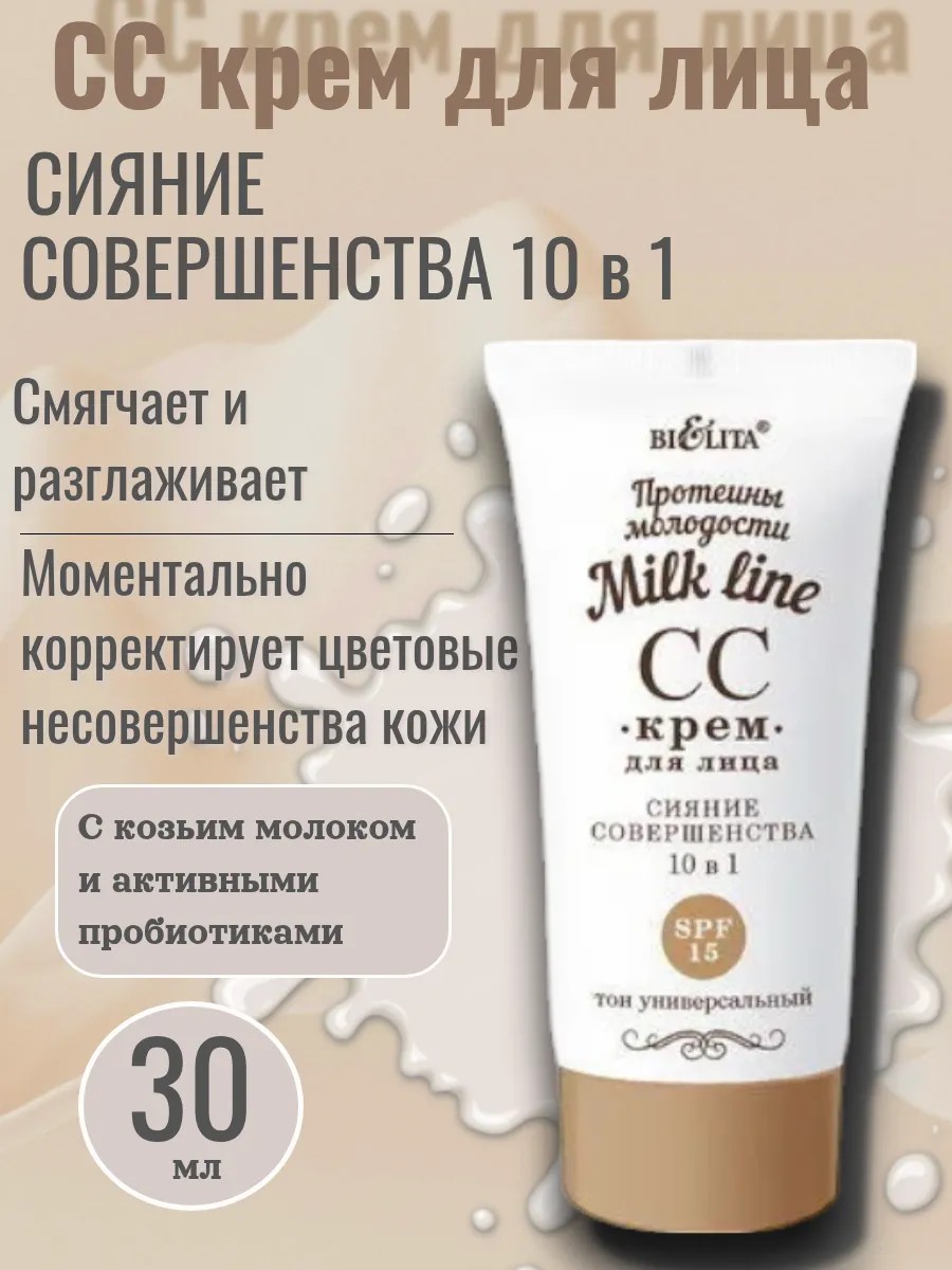 Belita Milk Line CC-Face Cream 10 in 1 SPF 15 30 ml. CC cream provides flawless coverage while gently caring for the skin, improving its appearance.