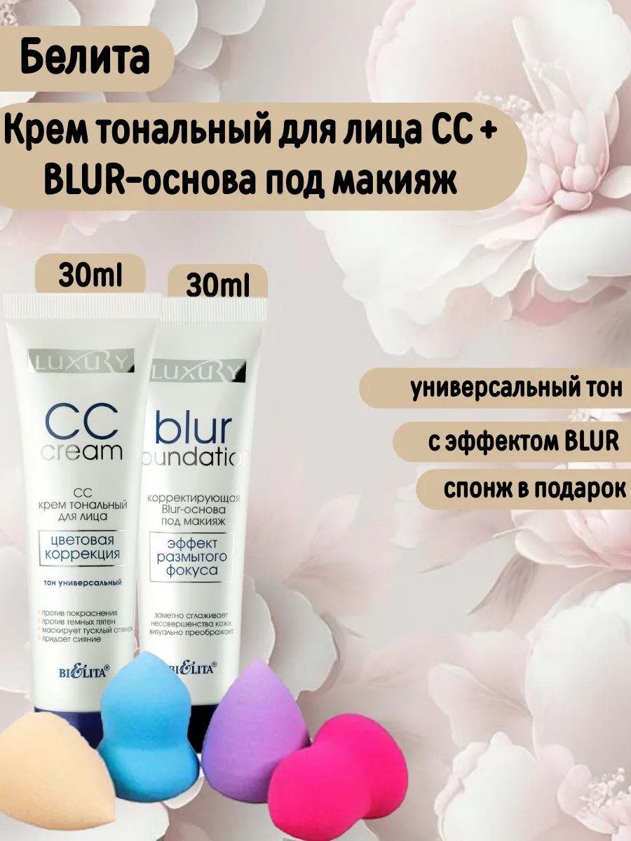 Белита СС крем тональный+ blur основа под макияж LUXURY+ спонж