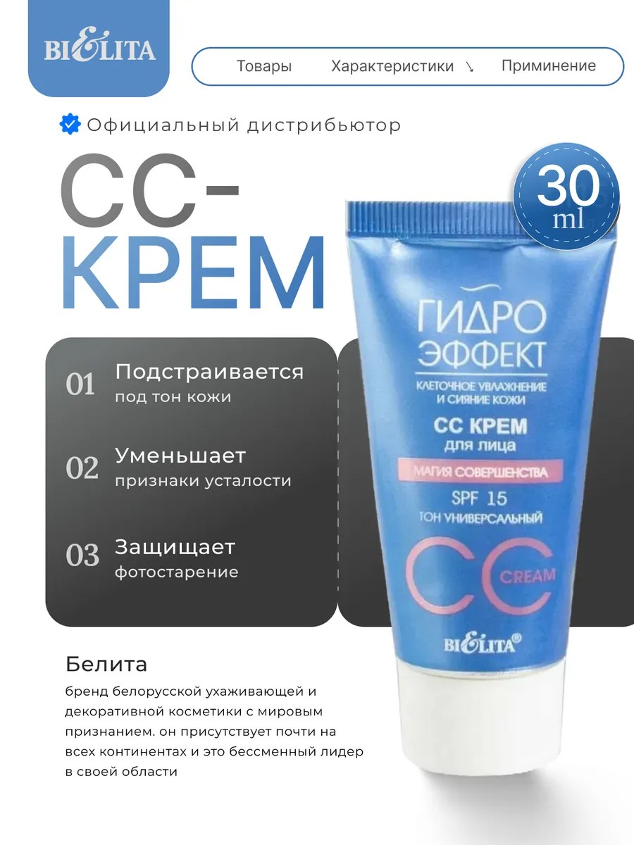 Белита СС крем для лица Гидро Эффект SPF 15