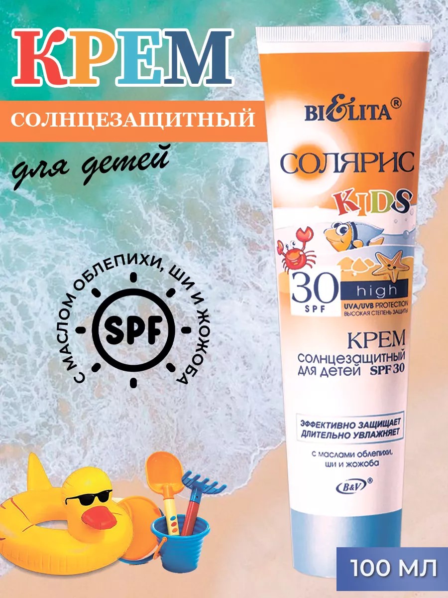 Солнцезащитный крем с малос обепихи от белорусского производителя косметики Белита Витекс – продукт для защиты от прямого воздействия лучей. С высокой степенью спф 30+. Эффективно защищает, предупреждает образование ожогов у малышей и детей раннего возраста. На упаковек указан возраст 1+. Однако солярис belita подходит для ребенка с самого рождения 0+, новорожденных и младенцев при отстутствии аллергии (необходимо провести тест). Но до 3-х месяцев следует избегать пребывания на солнце, даже если вы применяете солнцезащиту! Легкая текстура увлажняющей солнцезащиты нежно ложится без липкости. Косметические средства из Беларуси изготовлены без красителей, парабенов или отдушек. Группа растительных веществ Phytotal уменьшает зуд, раздражения или покраснения. Успокаивает и усиливает ее способность сопротивляться против UVA и UVB излучения. Натуральные масла в составе способствуют увлажнению и смягчению эпидермиса. Питают ее и восстанавливают. Можно испоьховать обладателями всех типов кожи: сухой или жирной, комбинированной. Можно сочетать с другими препаратами от и после загара: гель или лосьон, спрей или стик.