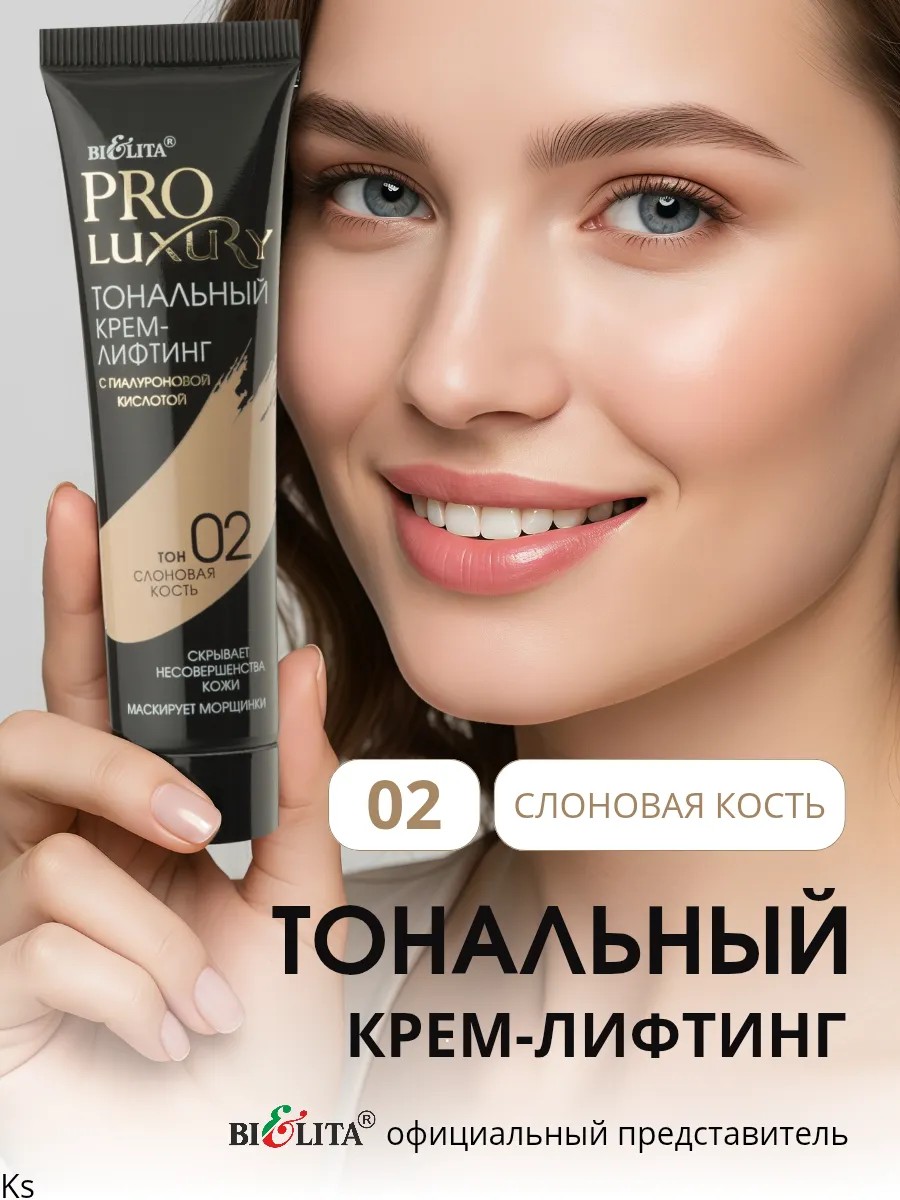 This lifting foundation with hyaluronic acid from the Belarusian brand Bielita combines 100% natural pigments that adapt to your natural skin tone and a complex of active ingredients essential for creating flawless skin. This complex of active ingredients conceals imperfections, evens out skin tone, flawlessly camouflages wrinkles, provides a lifting effect, doesn't create a mask-like effect, doesn't clog pores, doesn't rub off, and won't stain clothing. Ideal for all skin types, it rivals Korean cosmetics. This foundation is a great gift for women who want to look perfect in any situation. Whether it's a party, a date, or just everyday wear, this cream will help you create the perfect makeup and highlight your natural beauty. Apply the lightweight Bielita cream to cleansed skin of your face, neck, and décolleté, and gently massage in. Apply powder for a matte finish. Its camouflaging texture makes it suitable for use under the eyes as a concealer. Belarusian cosmetics foundation is a great gift for girls for New Year's, March 8th, Valentine's Day, and birthdays. It's a perfect complement to a beauty box for any occasion. This lifting foundation is the perfect coverage for your skin: healthy color, freshness, and radiance all day long!
