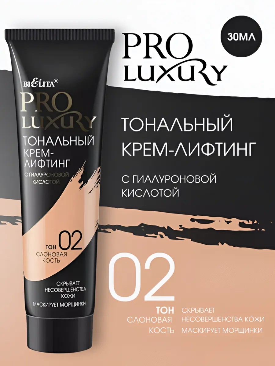 | Full product name | Lifting foundation with hyaluronic acid tone 02 ivory (tube 30ml PROLUXURY) |