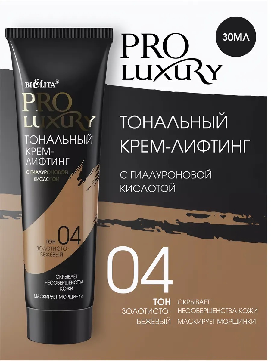 | Полное наименование товара | Тональный крем-лифтинг с гиалуроновой кислотой тон 04 золотисто-бежевый (туба 30мл PROLUXURY) |