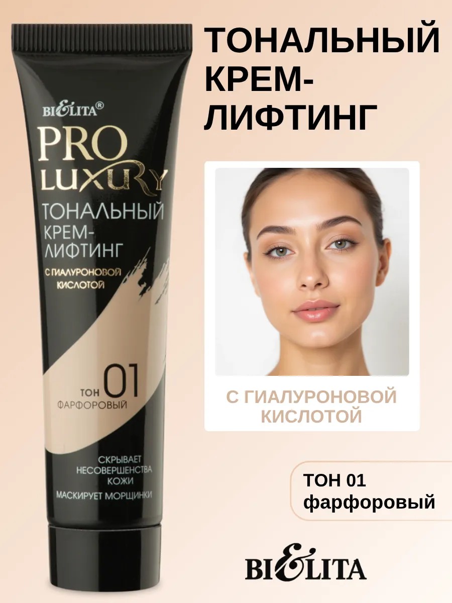Тональный крем-лифтинг PRO LUXURY с гиалуроновой кислотой секрет вашего мгновенного преображения. Крем сочетает в себе 100% натуральные пигменты, подстраивающиеся под естественный тон кожи, и комплекс активных компонентов, которые необходимы для создания идеальной кожи. Комплекс активных компонентов: скрывает несовершенства кожи, выравнивая её тон безупречно маскирует морщинки обеспечивает лифтинг-эффект не создает эффекта маски и не блокирует поры не стирается от прикосновений и не оставляет пятен на одежде.